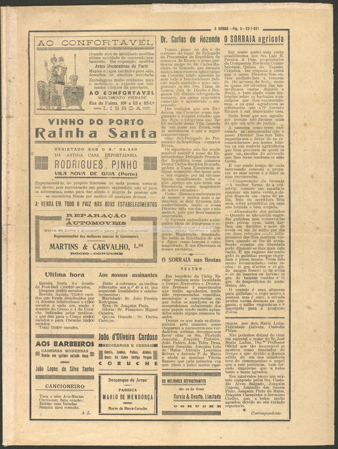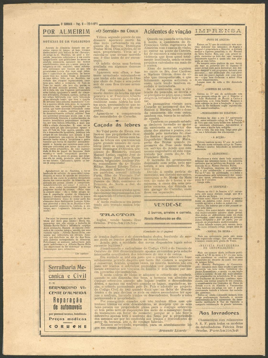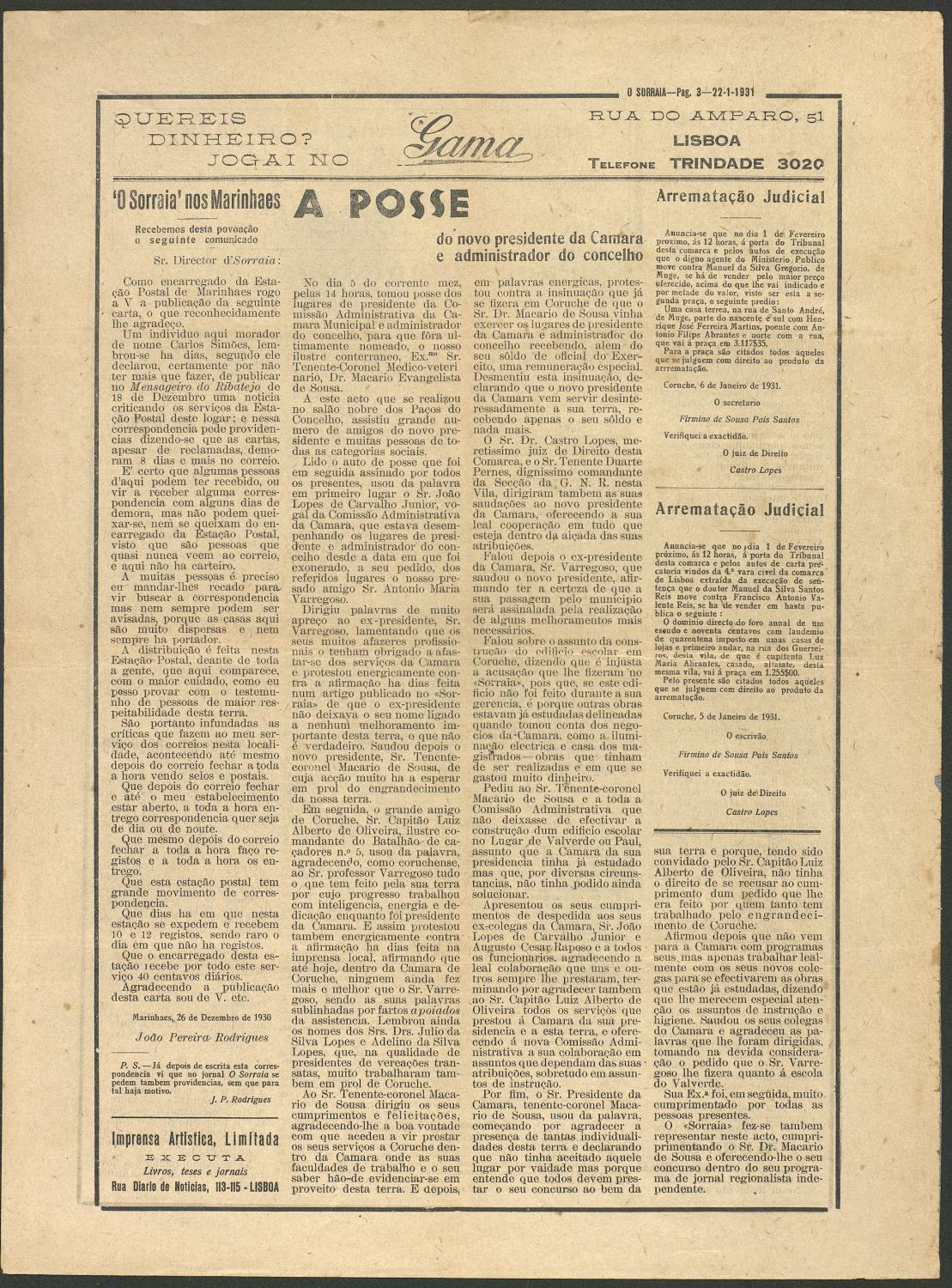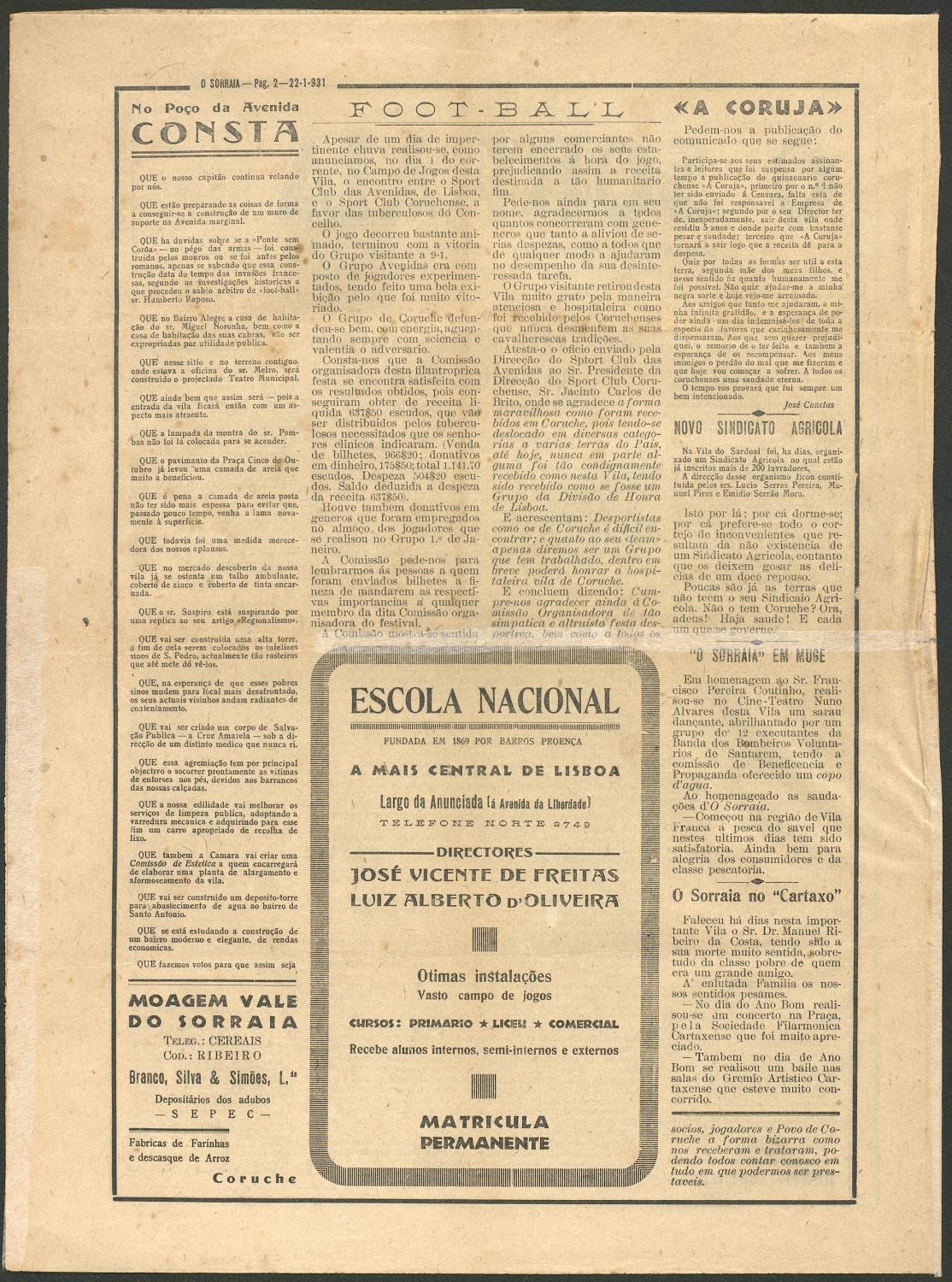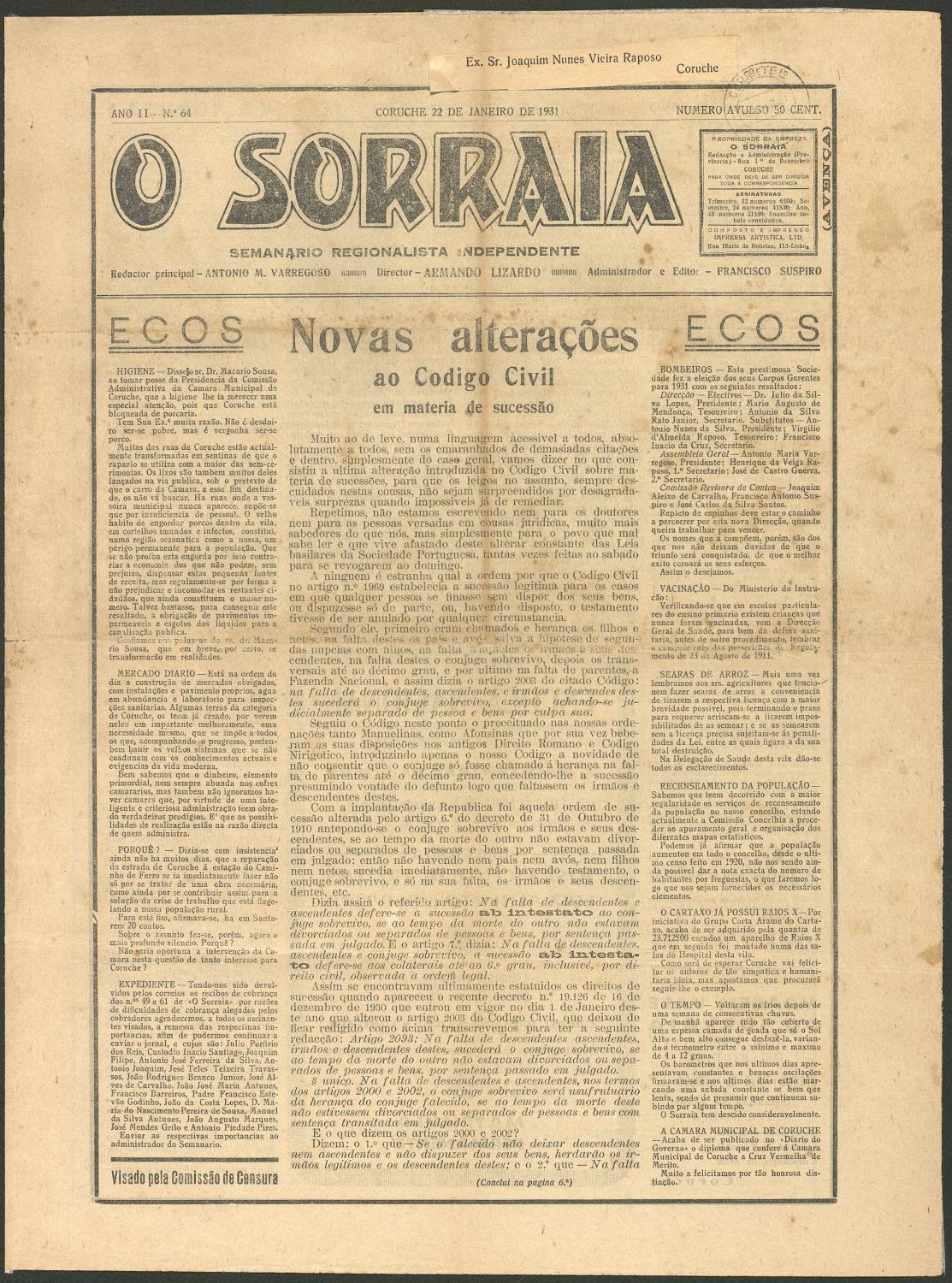 Jornal O Sorraia, ano 2, número 64, 22 de janeiro de 1931.