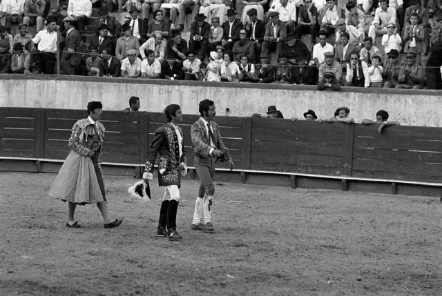 Corrida de toiros. Évora, 29/06/1972. A CAVALO: D. José de Athayde, José Mestre Batista, José Luís Sommer de Andrade. A PÉ: M. Grave, Carlos Pimentel. FORCADOS: Amadores de Santarém. Reportagem. 18/89 negativos em tira de 35mm.